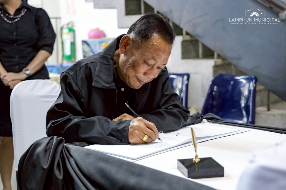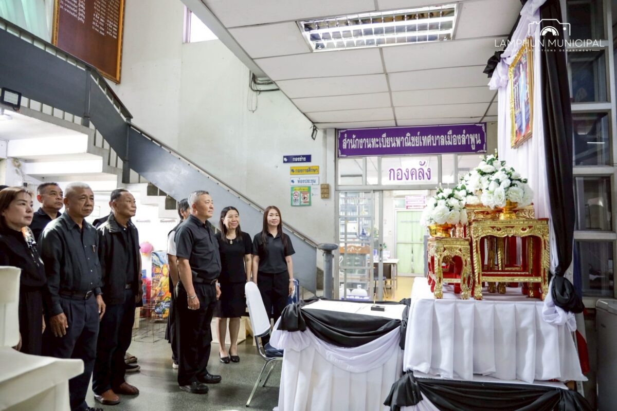 วันที่ 28 ตุลาคม 2568 นายประภัสร์ ภู่เจริญ นายกเทศมนตรีเมืองลำพูน พร้อมด้วยคณะผู้บริหาร, ปลัดเทศบาล, ข้าราชการ และพนักงานเทศบาล ร่วมลงนามถวายความอาลัย เบื้องหน้าพระฉายาลักษณ์ สมเด็จพระนางเจ้าสิริกิติ์ พระบรมราชินีนาถ พระบรมราชชนนีพันปีหลวง เพื่อแสดงความจงรักภักดี และน้อมสำนึกในพระมหากรุณาธิคุณอันหาที่สุดมิได้