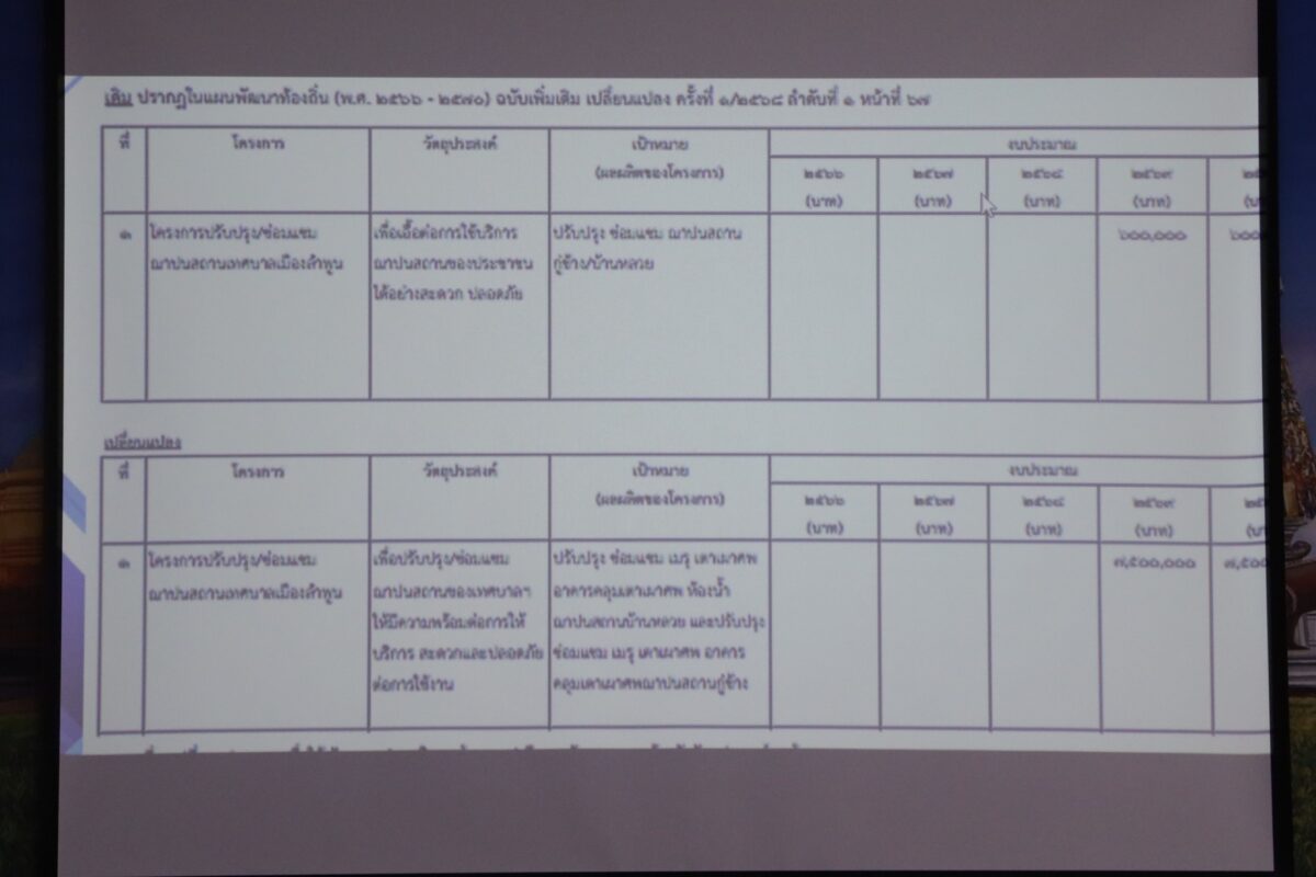 โดยมี คณะกรรมการพัฒนาเทศบาล และคณะกรรมการสนับสนุนการจัดทำแผนพัฒนาเทศบาลเมืองลำพูน เข้าร่วมประชุม ณ ห้องประชุมอาคารคุณธรรม 27 สำนักงานเทศบาลเมืองลำพูน ทั้งนี้ เพื่อพิจารณารายละเอียดในร่างแผนพัฒนาท้องถิ่น (พ.ศ.2566-2570) เปลี่ยนแปลง ครั้งที่ 1/2569 ของเทศบาลเมืองลำพูน เพื่อให้สอดคล้องกับสถานการณ์ปัจจุบัน ปีงบประมาณที่จะดำเนินงานโครงการ และรองรับการจัดทำงบประมาณรายจ่ายประจำปี งบประมาณรายจ่ายเพิ่มเติม และงบประมาณจากเงินสะสมของเทศบาลเมืองลำพูน