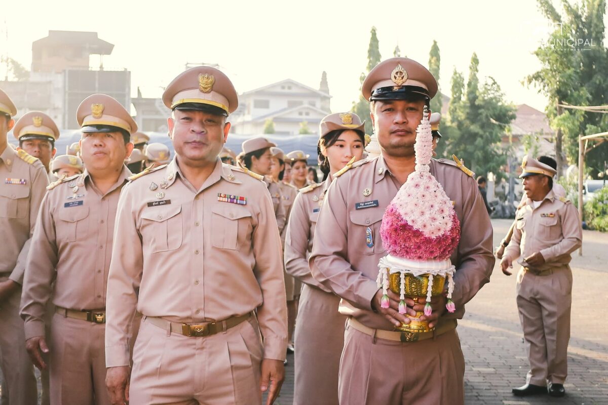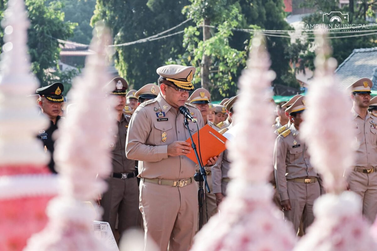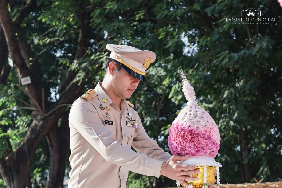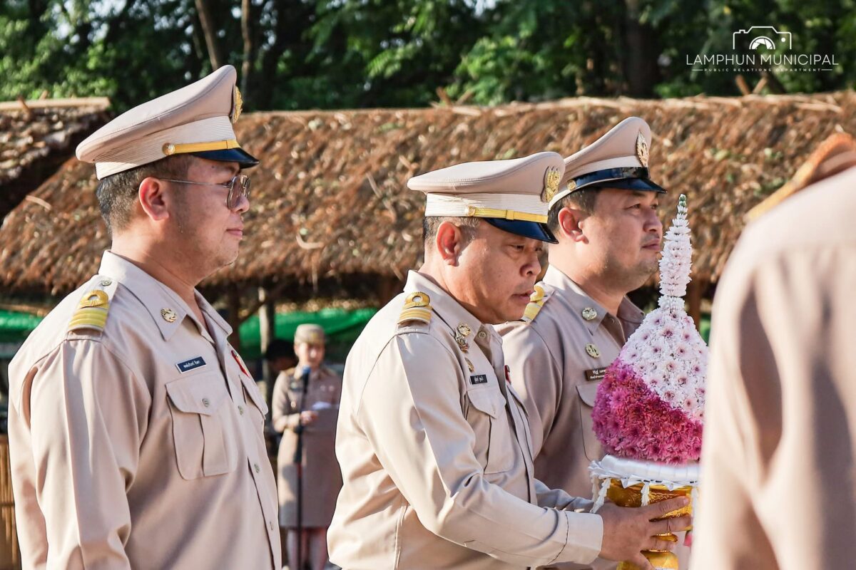 เทศบาลเมืองลำพูน ร่วมพิธีวางพานพุ่มดอกไม้ถวายราชสักการะ พระบาทสมเด็จพระจุลจอมเกล้าเจ้าอยู่หัว เนื่องในวันท้องถิ่นไทย ประจำปี 2569