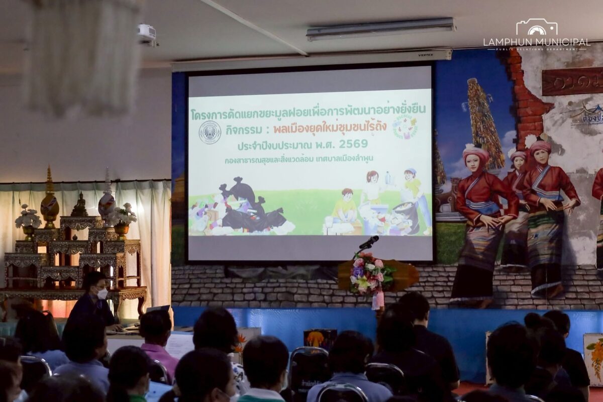 วันที่ 18 มีนาคม 2569 เทศบาลเมืองลำพูน จัดโครงการคัดแยกขยะเพื่อการพัฒนาอย่างยั่งยืน กิจกรรม “พลเมืองยุคใหม่ ชุมชนไร้ถัง” โดยมีวัตถุประสงค์เพื่อส่งเสริมให้ประชาชนมีความรู้ ความเข้าใจถึงวิธีการแยกขยะอย่างถูกต้อง สร้างความร่วมมือในการคัดแยกขยะจากต้นทางโดยชุมชน และลดปริมาณขยะก่อนเข้าสู่กระบวนการกำจัดอย่างถูกวิธี